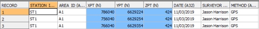 - XPT / YPT / ZPT: the 3D spatial (world) coordinates of the survey station.