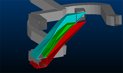 A Stope Scan Solid: typically a Lidar/CMS derived wireframe (you can find out more about recreating surfaces from scan data here). This is, effectively, the 'ground truth' of what void exists, without considering any previous mining from development operations (in either the upper or lower development areas).
