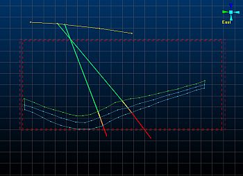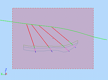 The current section is then indicated by a set of grid lines. Depending on the orientation of the view, these grid lines (and hence the current section) may fully or partially fill the extents of the 3D window.