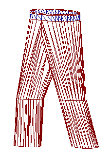 Using this command in conjunction with the 3D Solid linking method. If you have strings on adjacent sections that are to be linked together, and those strings cross each other when viewed in the direction of wireframing, then temporary vertices are inserted into the string and these temporary vertices are used when the wireframe is created. Since pairs of strings are wireframed at a time it is possible for these temporary vertices to be created for one pair of strings and not the other. In this situation a wireframe may be built which contains inconsistencies. Therefore the 3D-Solid method is not suitable for use with the older linking commands if adjacent sections contain strings that cross each other in the direction of wireframing. |