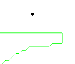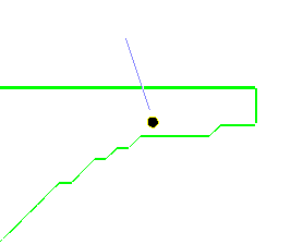 The original position of the point is transposed to the wireframe surface at the specified angle. For example, the following point location is above the DTM (shown as an outline (hull) only):