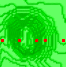 Points will be projected downwards onto the nearest wireframe currently in view. Note that the points will be project away from the line of sight, and wireframe surfaces should be positioned directly 'behind' the selected points for a valid surface to be found for projecting. For example, in the following image, 3 points are positioned above a wireframe surface, and were defined from a side (east-west) view.