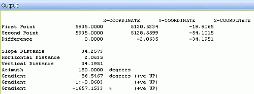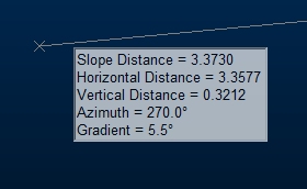 in the Output control bar: If cursor tooltips are enabled, summary information is displayed on screen at the cursor location, after the first point has been digitized: