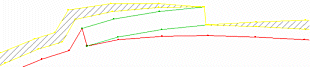You will be prompted for the percentage of the width of the berm at the place where the berm meets the road. The default value (100%) will reduce the width of the berm to null. Supplying a value of 0% will not reduce the width of the berm.