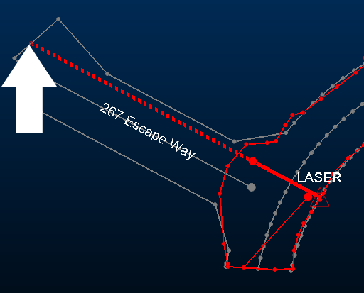 - Select Extend Laser Line and pick a design string vertex representing the limit of extraction, e.g.: