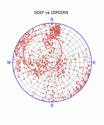 Axis Dip Direction: dip direction of cone axis.