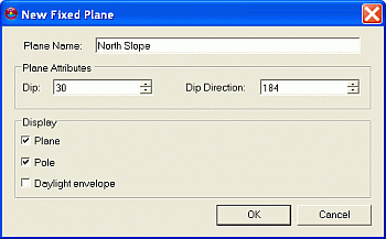 Multiple fixed planes can be defined within a stereonet plot, each with its own set of definition and display parameters, using the procedure outlined below: