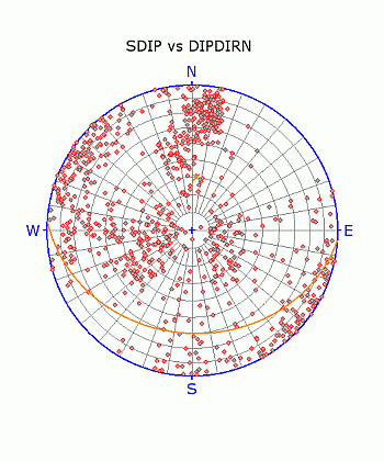The Stereonet dialog is modal. This means that it can be left open while other commands, e.g. in the Design or VR windows, are run. This allows it to be used for the interactive analysis of structural data across various windows and dialogs. |