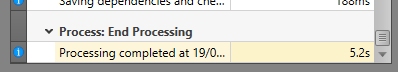 In a similar way to processing (described in the previous tutorial section), a dependencies report is displayed, highlighting errors, warnings and messages. In your case, you should see only messages, with the final entry stating "Processing Completed" (and the current date) e.g.: