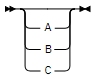 This example shows that you must specify values A, B, and C. Required values are shown on the main line of a railroad diagram: