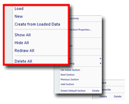 - Sections parent menu - contains commands relating to a section, or group of sections if multiple definitions exist. More...