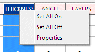 You can also globally set an attribute to be active or inactive for all objects in the Object Table (at least, those that are currently displayed - see "Filtering the Attribute Manager", below). To do this, you will need to right-click the horizontal table columns (those describing the attributes) and selecting the Set All On or Set All Off options