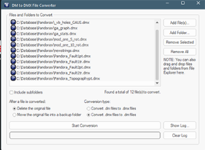 Use the Type Conversion options to pick which 'direction' to convert files (DM to DMX or DMX to DM). If files for conversion are already listed, the view updates to show only files relevant to the option selected.
