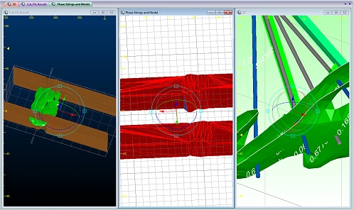 "Independent" 3D views allow you to scrutinise all types of data, with different formatting in unlinked windows. For example, you can fully scrutinise your geological data with independent formatting and loading of any data types in multiple windows; show your resource model as an intersection showing AU grades within bounding structures in one window, then display the model and corresponding drillhole data in the other with front clipping.