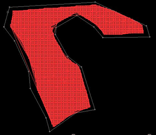 Consider an example where a boundary string object has been digitized, as shown by the image on the left. If that string object was selected as the boundary, and Inside boundary strings checked, the resulting DTM mesh would be as shown on the right:
