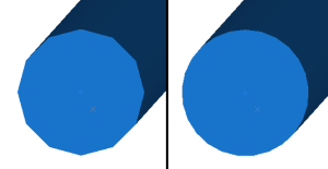 Change the resolution of alignment string segments rendered using the 3D setting and drillholes rendered using the Default Cylinder setting. This increases the number of cylinder 'faces'. For example, the image on the left below shows the end of an open string with Edge Cylinder Segments set to 12. On the right it is set to 24. Values between 3 and 25 are allowed. See Strings Properties: Lines. Also see Drillholes: Style |