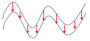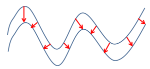 Thickness is the distance inside a wireframe from one side to the other. In some cases this may be measured within a closed wireframe, but in others multiple DTMs may represent the interfaces between different volumes. Note that sense of what is inside a wireframe is determined by the direction of the triangle the point is on. For properly verified objects, this should always underneath true DTMs, and inside of fully closed wireframes.