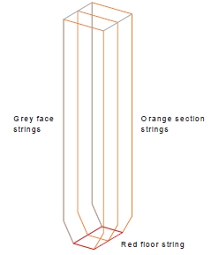 In addition to optimized volumes, the Prism method will also generate a set of construction strings. The Prism strings produced are as depicted below and include: