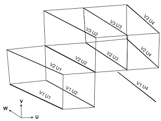 For a Slice method, the faces of the stope-shapes produced are sectional outlines defined by four points. For orebodies with vertical orientation this will be two on the floor and two on the back. For orebodies with horizontal orientation this will be two on each of the stope end faces. The points lay in the stope-shape UV-axis plane and the projection of the face is either a rectangle or a trapezoid where the opposite sides are parallel. Rectangular and trapezoidal shapes are special cases of 4 sided polygons. These are commonly referred to as quadrilaterals in MSO. The quadrilaterals form a tube-shape when extruded in the transverse direction representing the stope-shape W-axis. More...
