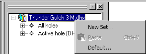 The Holes tab of the workspace window, by default, displays two groups of holes: All holes and Active hole. Neither of these allows deletion of holes. Both All holes and Active hole can be used to create a set which can be edited such that only the holes of interest are present.