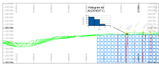 The following series of images shows a histogram plot item that has been inserted as a locatable plot item.