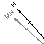 • You can add a Grid Arrow, that is, an arrow plot item that will align with 'grid north'. This direction is based on the local coordinate system of the grid in question (which, in turn, supports a custom alignment with the world coordinate system), you could potentially use this option to add a non-north arrow to your plot (for example, you could show magnetic north and grid north, for example, as shown in the image below).