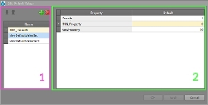 - Properties Table – For the selected value set this table indicates the properties that set contains, and the corresponding default values.