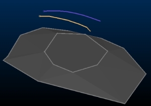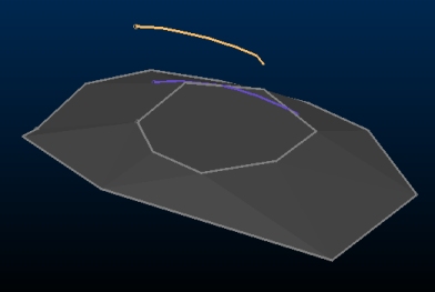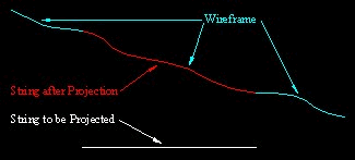 Below is an example of projecting a string to a wireframe. The flat string takes on the contours of the wireframe after projection. Thus the total segment length of the string increases after projection.