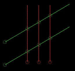 The results of the Break at Intersections action are shown below with the start points of the strings indicated by the large circles. These strings could then be trimmed at either end to tidy them up as pillar strings.