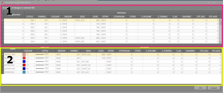 Extracting definitions can streamline setting up design definitions, particularly at the start of a project where you may have, for example, legacy design data from Studio 5D Planner or Mine2-4D or you wish to construct new definitions based on the contents of any existing Datamine binary file.