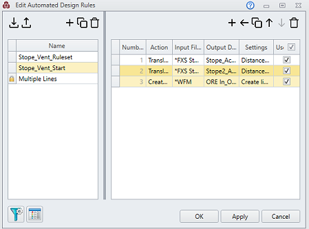 Your managed planning workflow features a range of managed tasks that transition initial underground design data to mining activities and volumes that can be scheduled at levels of varying granularity.
