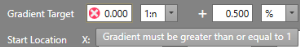 Change Gradient By – The maximum allowed gradient change until it reaches the Gradient Target value. The value can be related to any of the following units: Percentage %, Degrees ⁰ or Ratio 1:n.