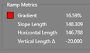 After the Start/End region reaches the same gradient defined as the Gradient Target, the gradient is a result from the ramp length and vertical distance between start and end points.