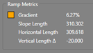 * This gradient refers to the uniformly graded section of the ramp between either the start location, or end of the start transition, AND either the end location or end of the end transition. Depending on which access point controls (transitions) are enabled and specified.