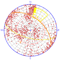 9. Click OK to display the set boundaries, average pole (for the set) and average plane (for the poles within the set):