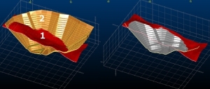 Defining a vertical section, with a 20m corridor, that aligns with the topography surface at an appropriate azimuth. See 3D Sections.
