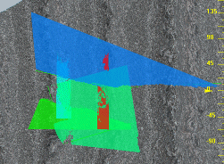 5. Planes are then generated in alignment with the profile of the points on the underlying string data, and are displayed in the 3D window. As with any other 3D object, you can switch the plane display on or off, or set visual properties by right-clicking an object to select Properties.