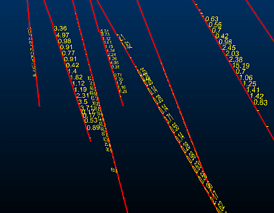 (String and drillhole overlays) Parallel— labels are orientated in the direction of the data.