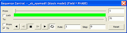 From/To Slider Bars: use the slider bar to determine at which point (according to the underlying Sequence field) a sequencing animation is to be played from, and played to. The resulting green region then indicates the full extent of the animation, when compared to all available sequencing 'frames'.