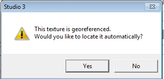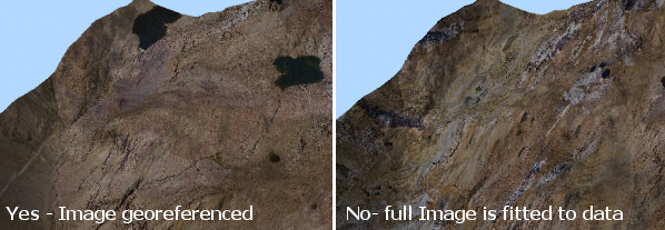 An image may also be without georeference data, meaning it can either be tiled onto a wireframe, or the texture can be oriented manually or interactively (and a subsequent georeference data file saved).