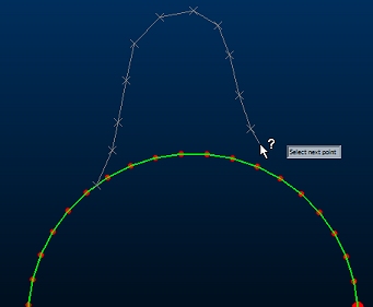 When a subsequent pick is a right-click snap to the original string, or is a left-click within the standard picking distance of the original string, the command will insert the new points between the first and final points selected on the original string. New edges use the existing string attributes.