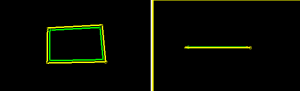 Consider the following example, where a simple square closed string (with all data at the same elevation) is expanded by 5m. Where the initial view directional is orthogonal to a horizontal or plan section, and this is the section upon which the string is digitized, expansion is performed outwards but remaining on the horizontal plane (image shows the original top-down view and side view after expansion):