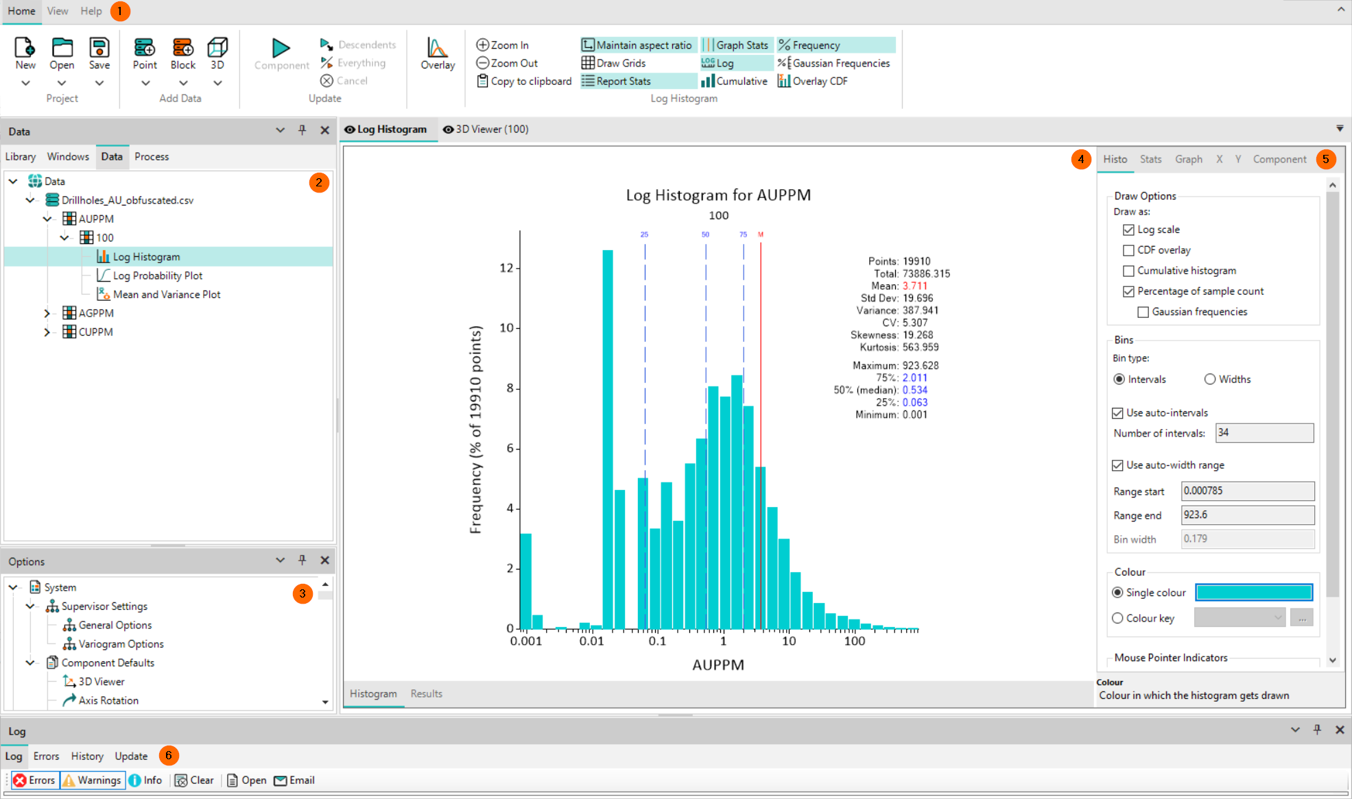 - Main Canvas – Located in the centre. Displays the selected plot, 3D Viewer tab and the Results tab.